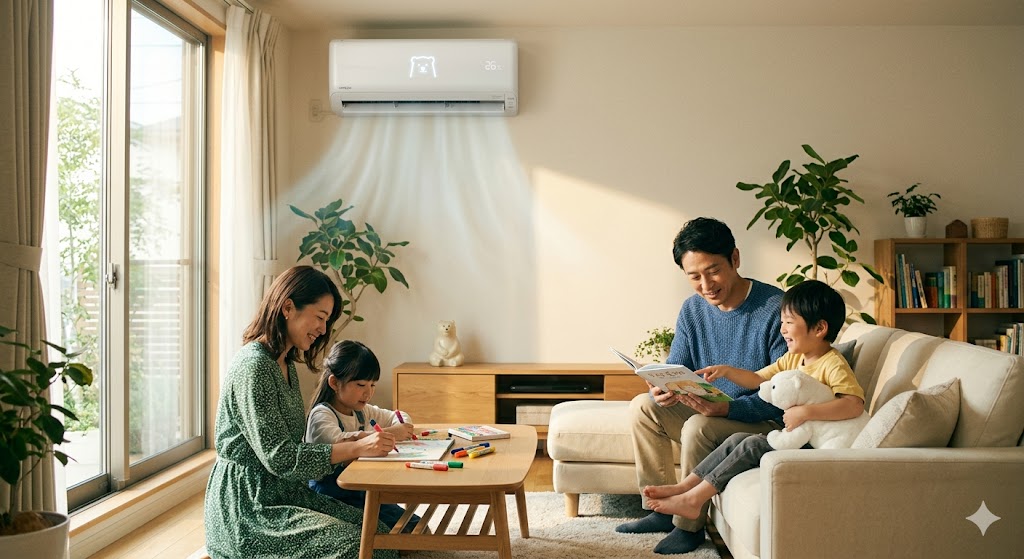 - パーソナライズされた快適性: ソファに座っている人には直接風を当てない「風よけ」、冷えやすい足元を狙って温風を届ける「足元暖房」など、一人ひとりの好みに合わせた制御をAIが自動で行います。「エアコンの風が顔に当たって不快」「足元だけがいつまでも寒い」といった、日々の小さなストレスをテクノロジーで解決してくれる。これこそが、ハイエンドモデルを選ぶ大きなメリットです。